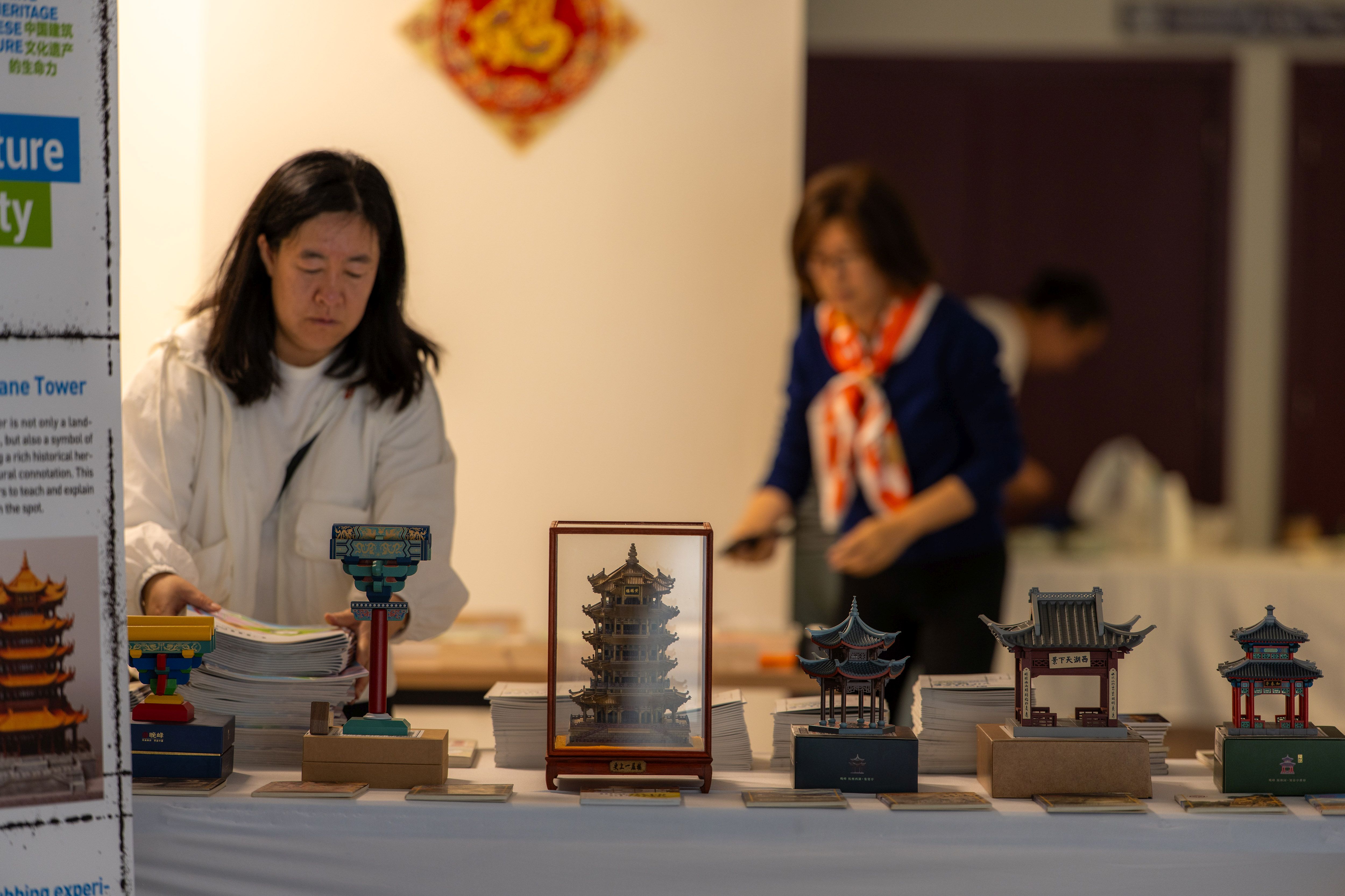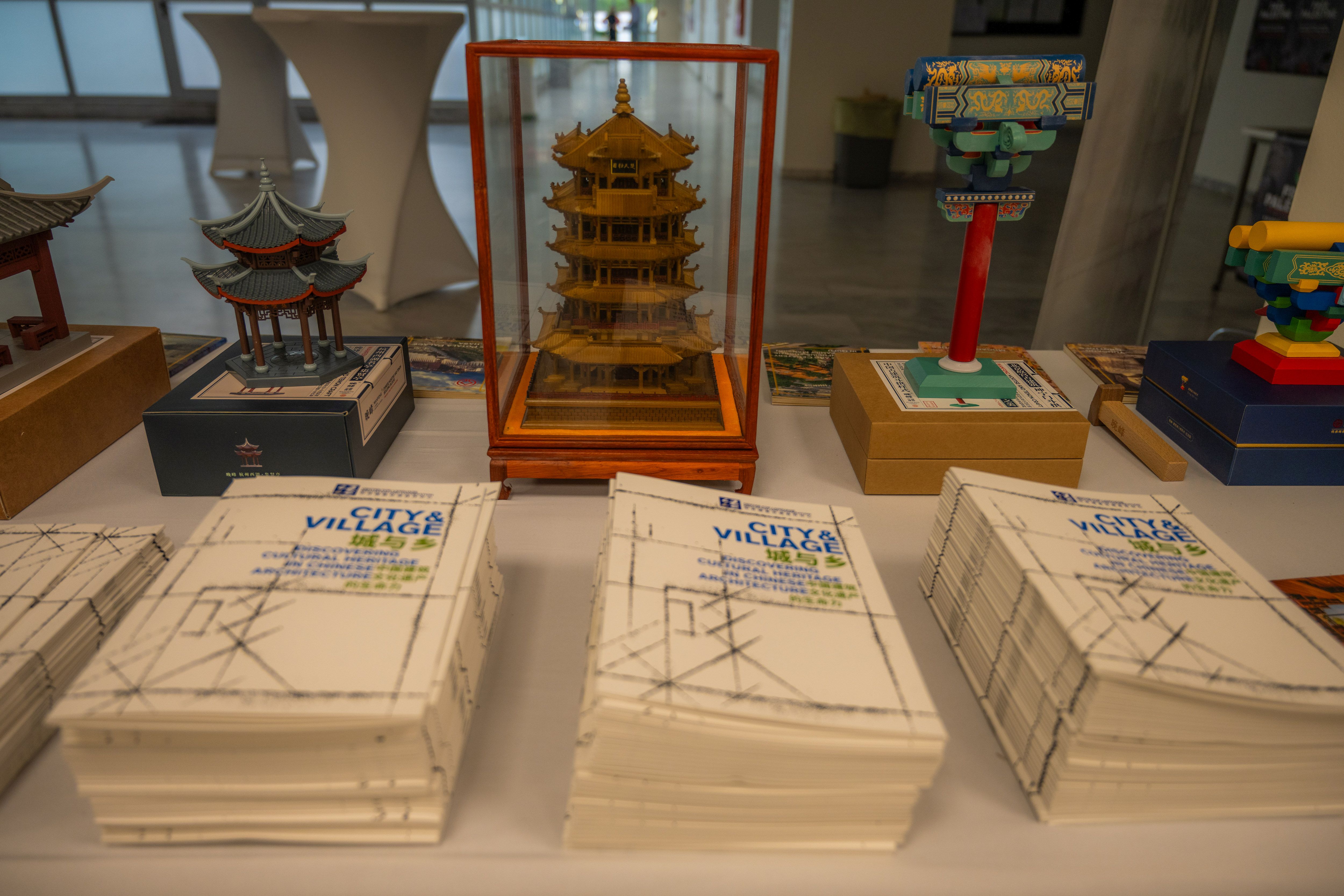 Η έκθεση παρουσίασε μια σειρά αρχιτεκτονικών μοντέλων —μεταξύ των οποίων και ο εμβληματικός Πύργος Yellow Crane— καθώς και υλικά αποτυπωμάτων (rubbing kits), flipbooks, βιβλία, ενημερωτικά φυλλάδια και επιλεγμένο οπτικοακουστικό υλικό. Τα εκθέματα πρόσφεραν στους επισκέπτες μια εισαγωγή στις καλλιτεχνικές, δομικές και ιστορικές διαστάσεις της κινεζικής αρχιτεκτονικής, καθώς και στην ανθεκτικότητά της απέναντι στη ραγδαία εκσυγχρόνιση.