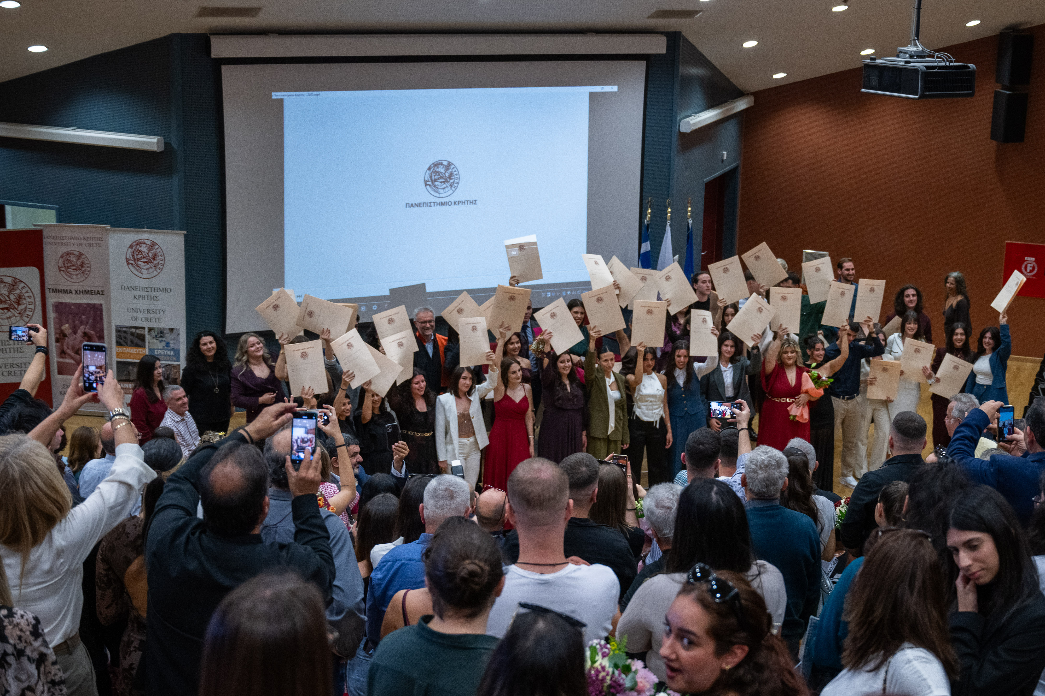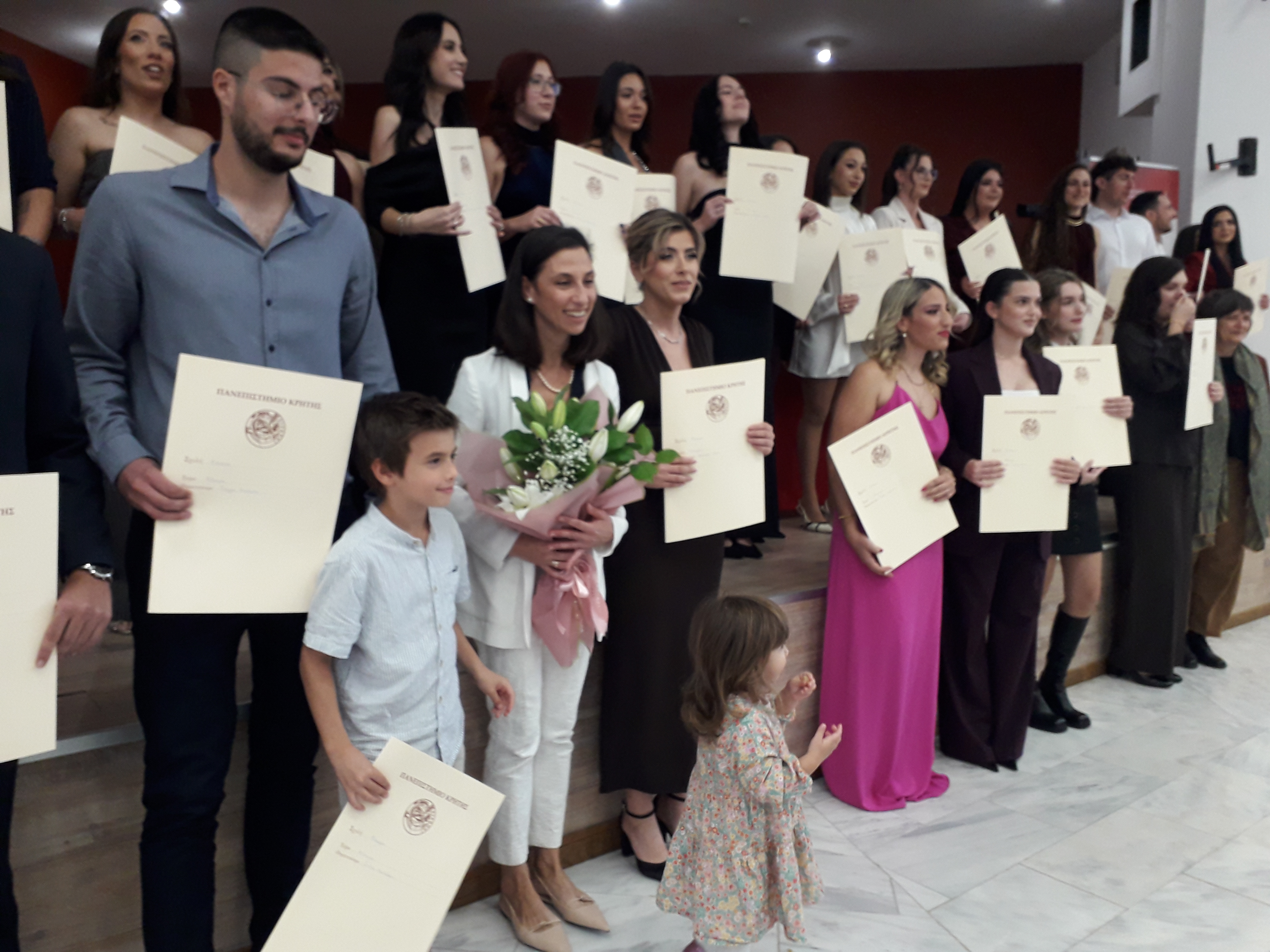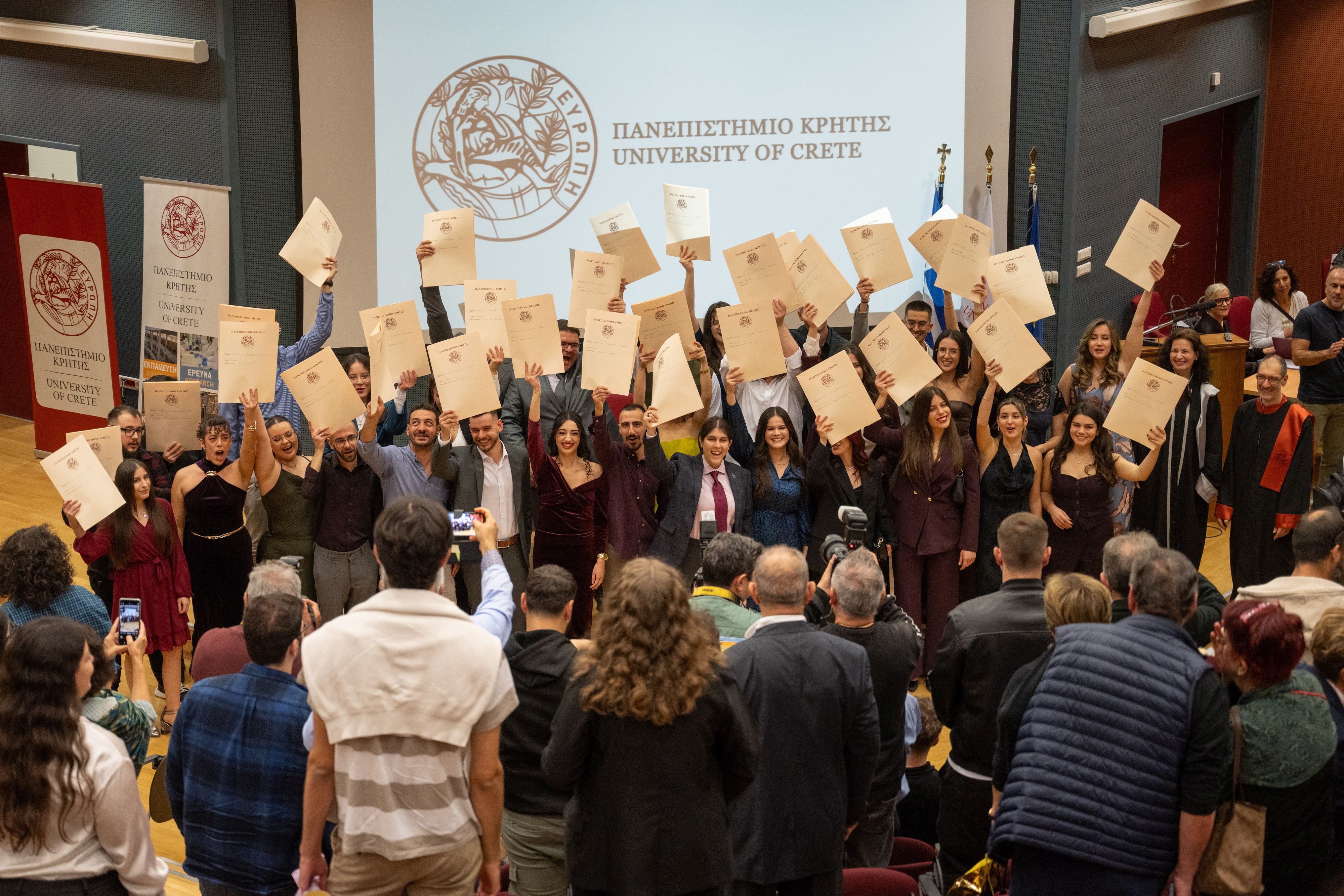 Το Πανεπιστήμιο Κρήτης εκφράζει τα θερμά του συγχαρητήρια σε όλους τους αποφοίτους και τους εύχεται καλή σταδιοδρομία και μια δημιουργική πορεία, με διαρκή διάθεση για μάθηση, προσφορά και πρόοδο.