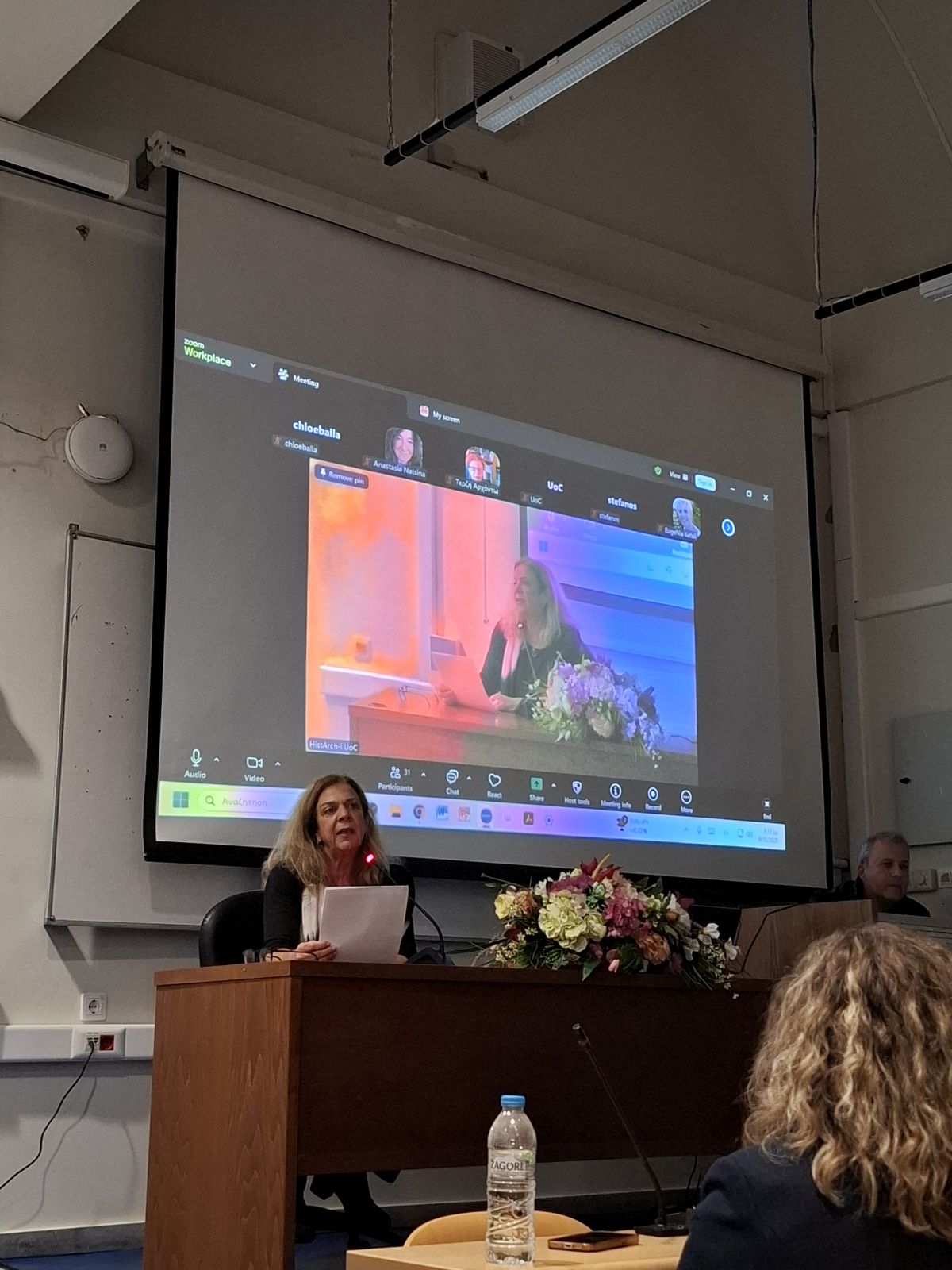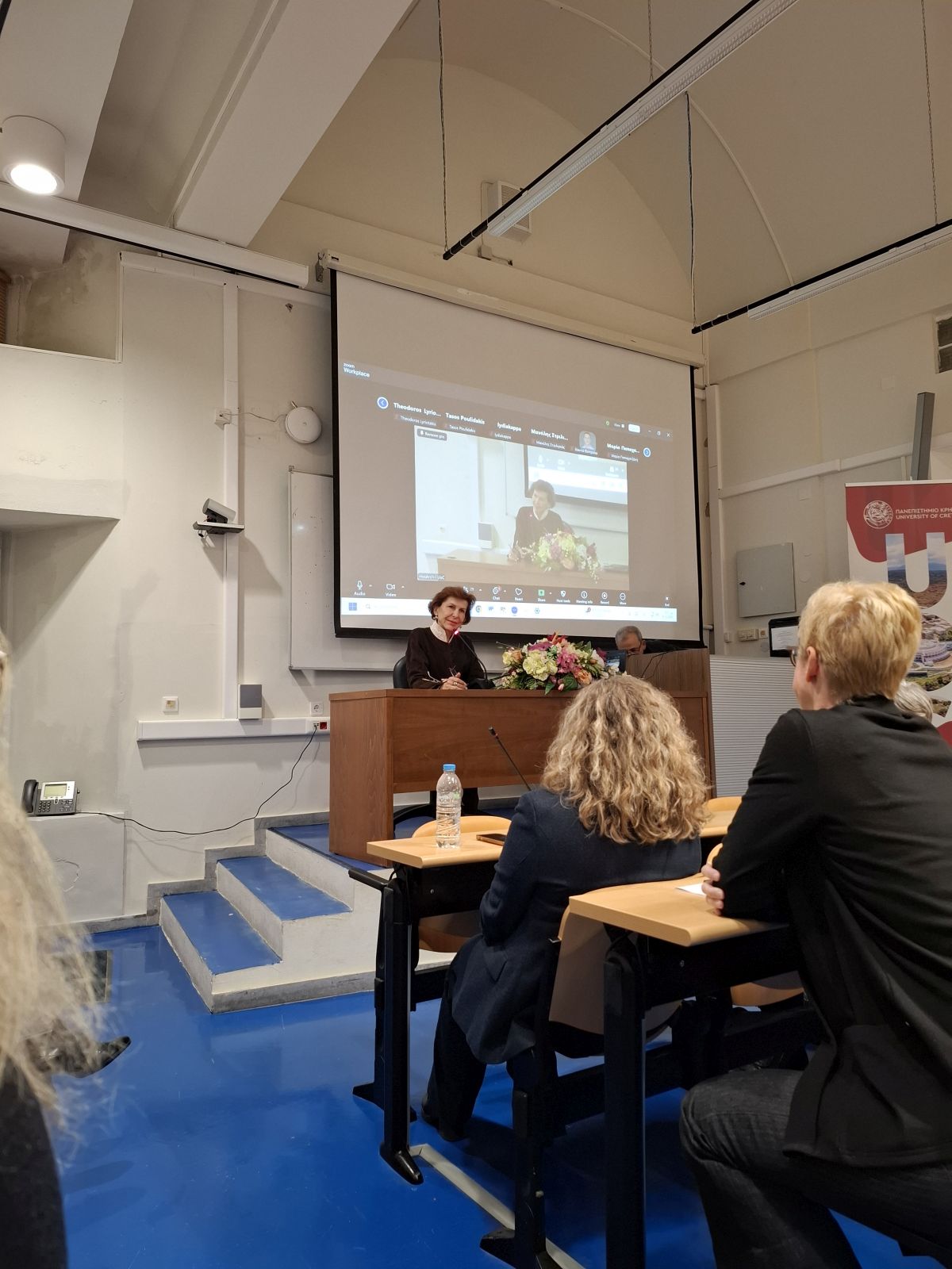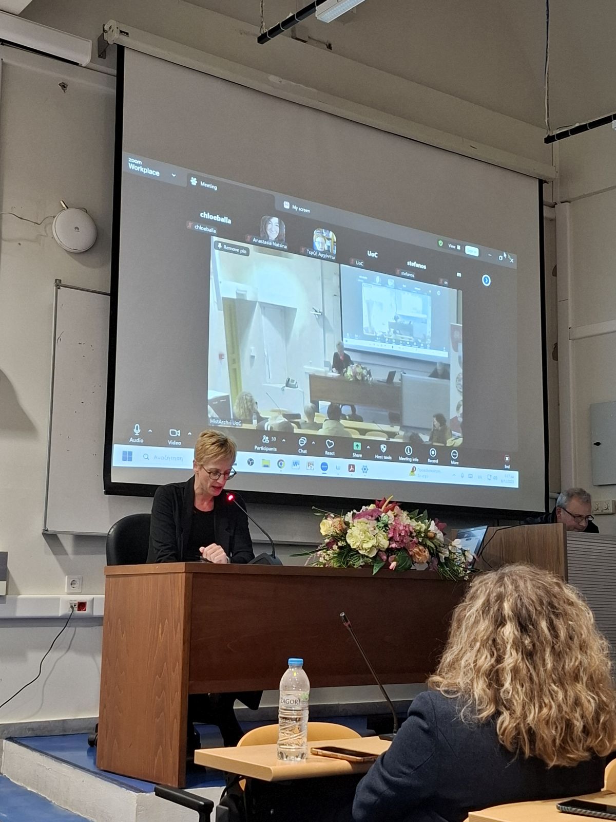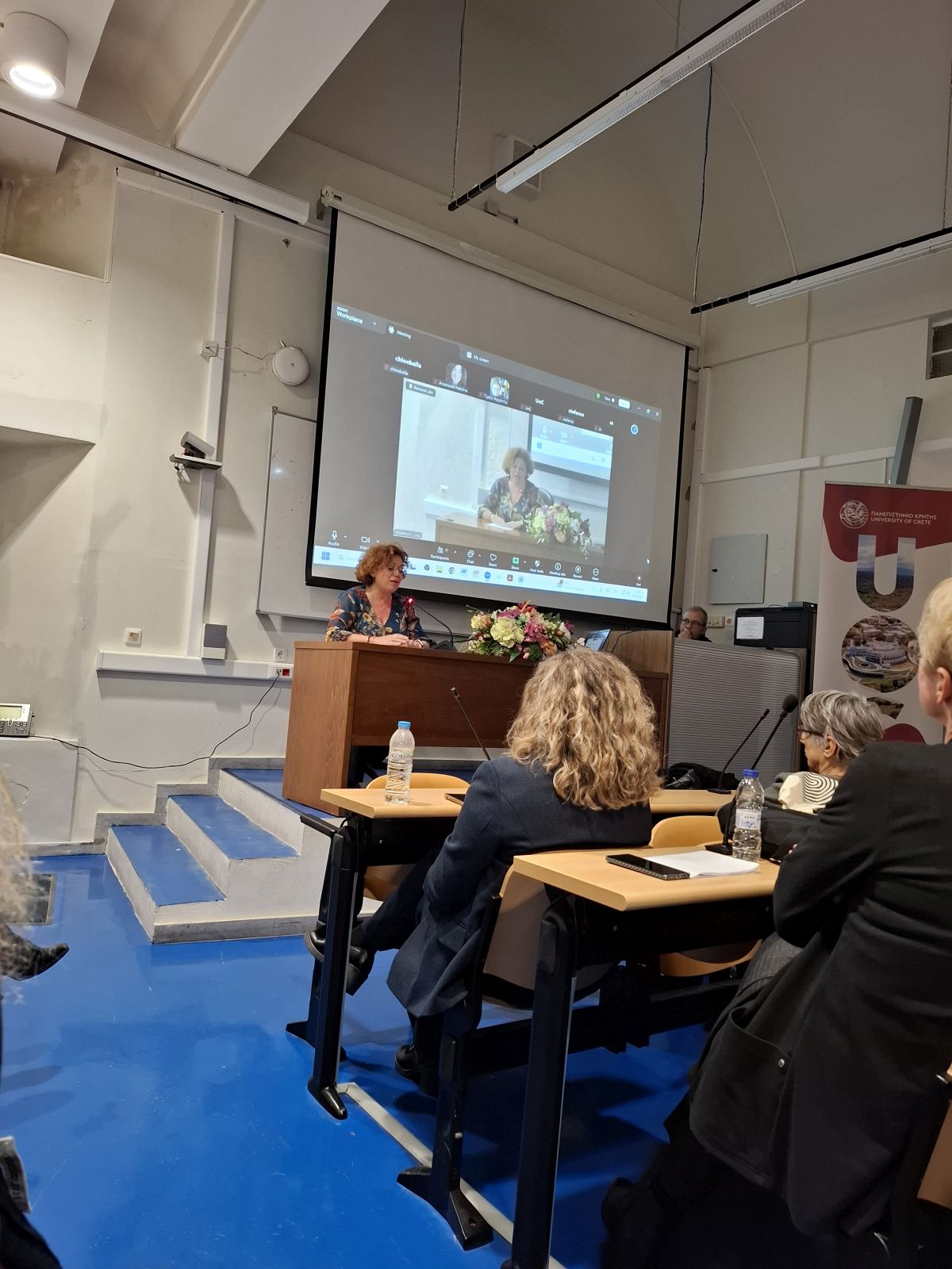 συνέχεια μίλησε για τη φωνολογική της έρευνα στην κρητική διάλεκτο. Με τρόπο χαρακτηριστικά