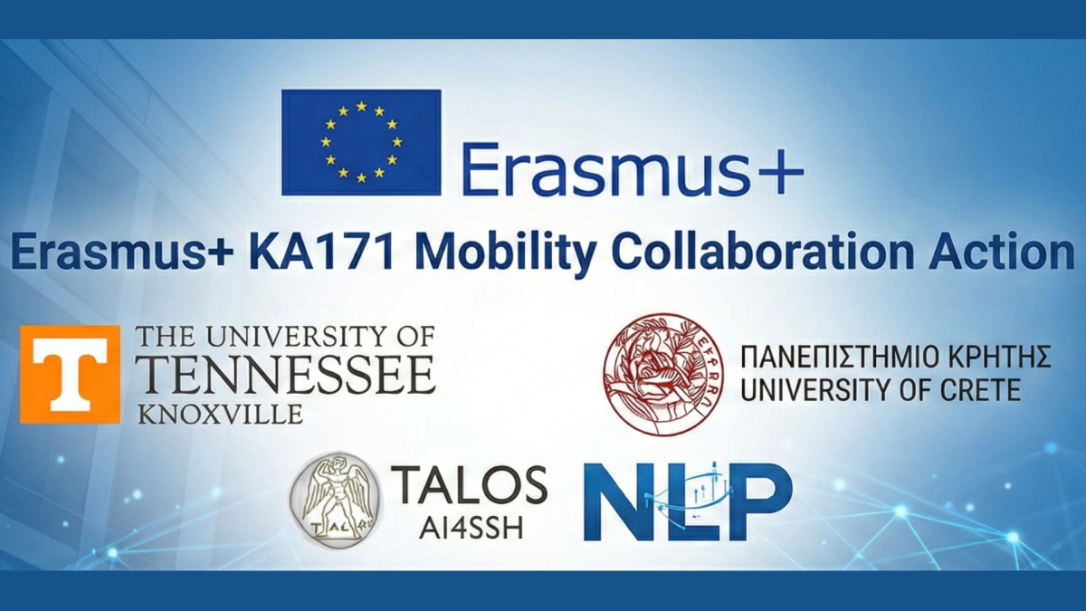 The TALOS AI4SSH Lab is pleased to announce the launch of a new international collaboration under the Erasmus+ KA171 International Credit Mobility Programme between the University of Crete (TALOS Lab) and the University of Tennessee, Knoxville.