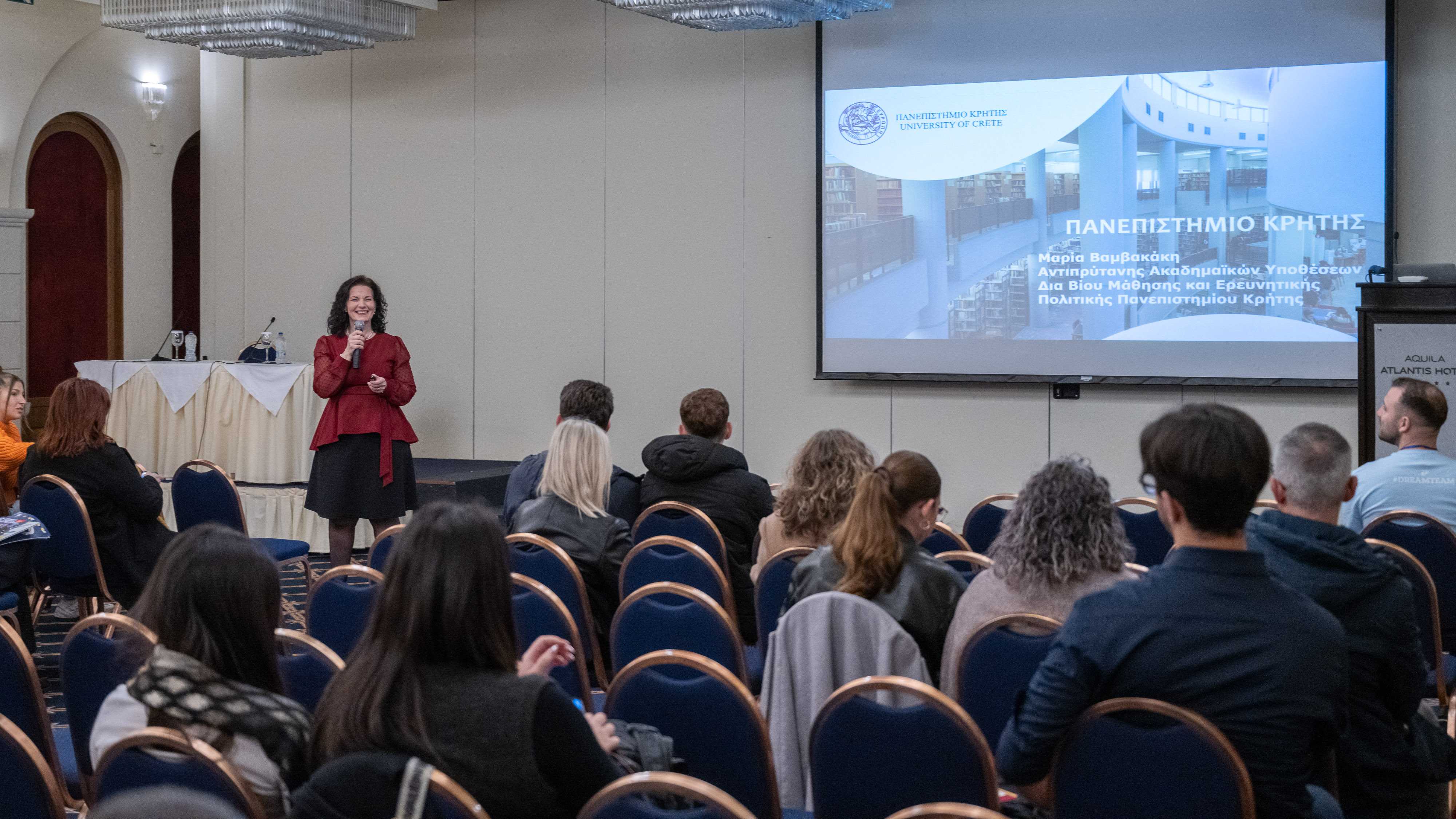 Prof. Maria Vamvakaki, Vice-Rector of Academic Affairs, Lifelong Learning, and Research Policy, presented the various opportunities for studies and research in the University of Crete.