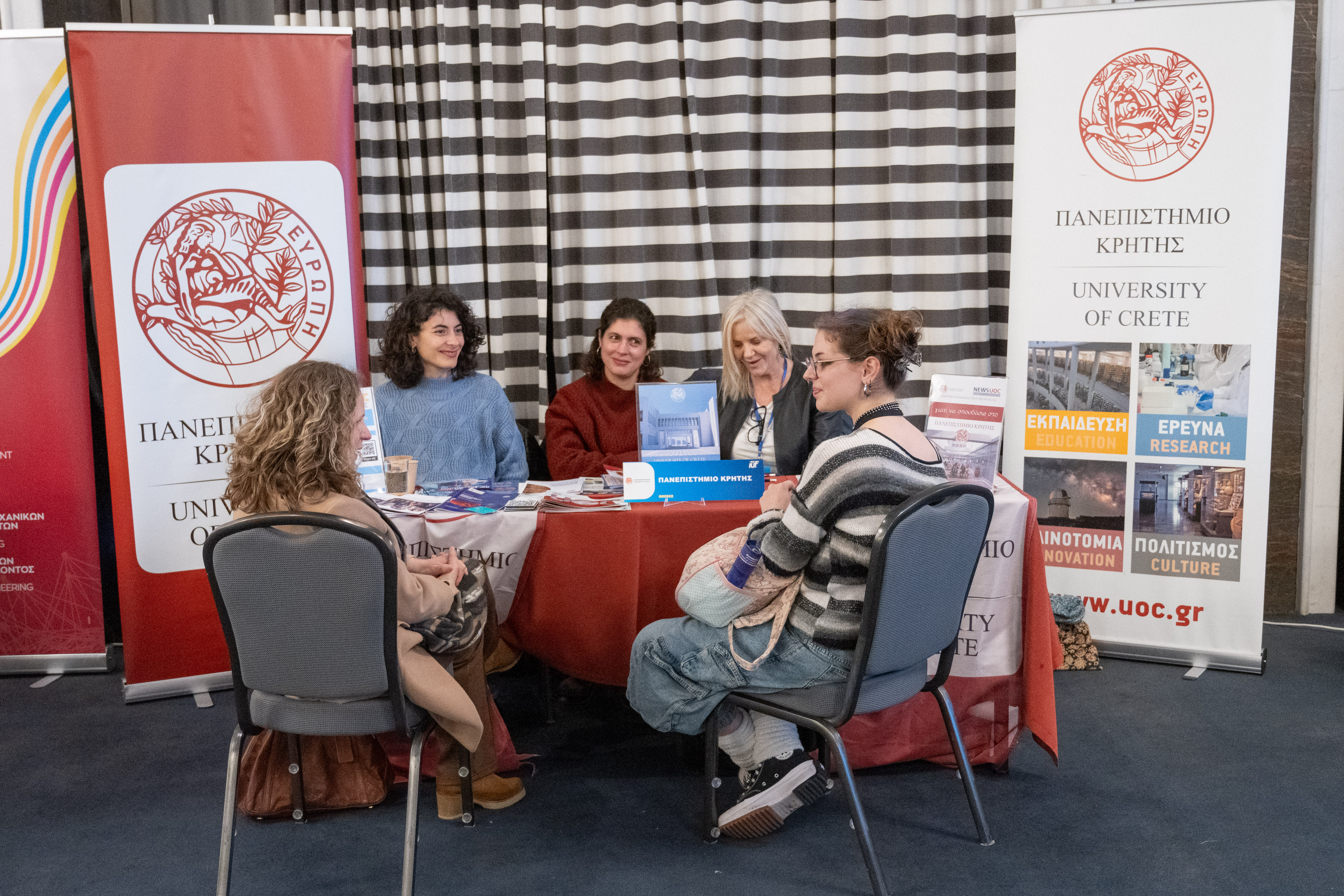 The University of Crete participated in the Heraklion fair with an exhibition booth, where institutional representatives provided visitors with detailed information on undergraduate and postgraduate study programmes, as well as opportunities for academic and professional development.
