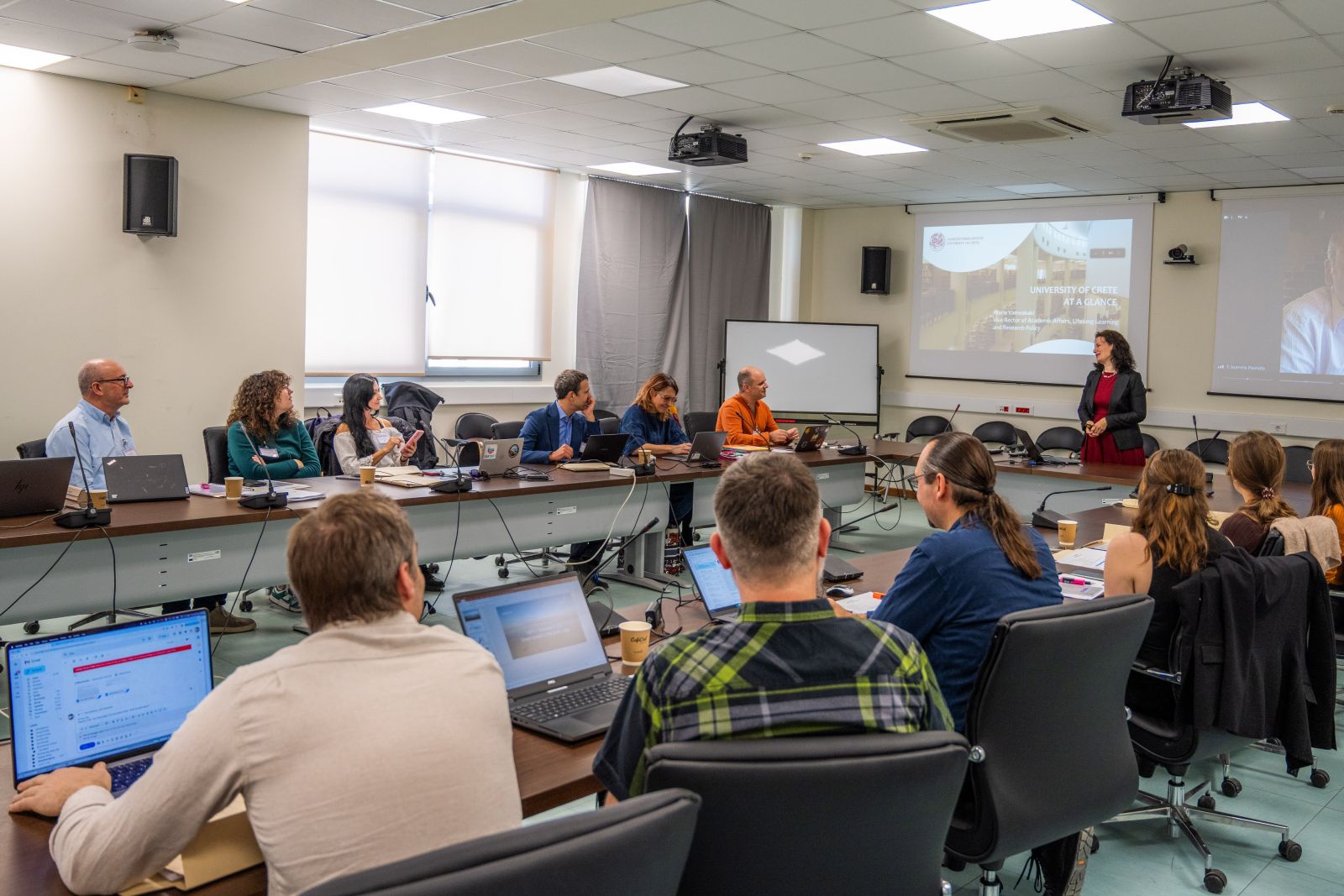 Το Πανεπιστήμιο Κρήτης υποδέχθηκε τους εκπρόσωπους όλων των εταίρων στις 27 και 28 Νοεμβρίου, για να συντονιστούν σχετικά με τον καλύτερο τρόπο υλοποίησης του προγράμματος τα επόμενα τέσσερα χρόνια. Η εκδήλωση ξεκίνησε με τον χαιρετισμό της καθηγήτρια Μαρία Βαμβακάκη, Αντιπρύτανη Ακαδημαϊκών Υποθέσεων, Δια Βίου Μάθησης και Ερευνητικής Πολιτικής του Πανεπιστημίου Κρήτης. Στη συνέχεια, οι εταίροι είχαν την ευκαιρία να ακούσουν τους συντονιστές των αδελφών έργων, XTREAM και XTREMOLIFE, τα οποία ανήκουν στην ίδια πρόσκληση. Οι συμμετέχοντες μοιράστηκαν πολύτιμες γνώσεις σχετικά με τις αποστολές και τις μεθοδολογίες των έργων τους, συζήτησαν για τις ευκαιρίες ανταλλαγής γνώσεων (cross-fertilization) και έθεσαν τα θεμέλια για κοινές δραστηριότητες στο πλαίσιο της σύμπραξης (cluster). Κατά τη διάρκεια των δύο ήμερων οι εταίροι παρουσίασαν τον φορέα που εκπροσωπούν, καθώς και τον ρόλο και τις αρμοδιότητες τους στο πρόγραμμα NEXTMARINE. Ακολούθησαν ενδιαφέρουσες συζητήσεις που ανέδειξαν την πολλά υποσχόμενη δυναμική της συνεργασίας. Ιδιαίτερη χαρά προκάλεσε η συμμετοχή της Project Manager, Ruska Kelevska, και του Financial Manager, Paul Sescu,από την Ευρωπαϊκή Επιτροπή, οι οποίοι συμμετείχαν διαδικτυακά και παρείχαν πολύτιμες κατευθύνσεις και οδηγίες.